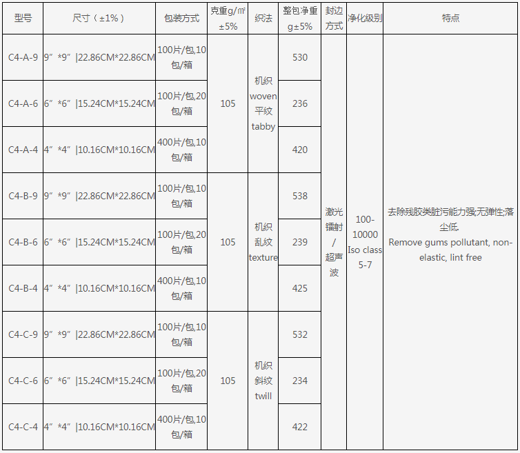 C4系列--滌錦復合超細纖維機織無塵擦拭布