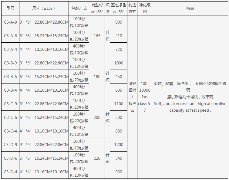 C3系列滌錦復(fù)合超細(xì)纖維針織無塵擦拭布